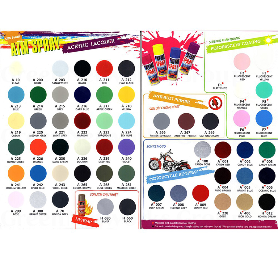 Sơn xịt atm màu xanh táo 400ml A217 APPLE GREEN Atmspray,12 chai/thùng
